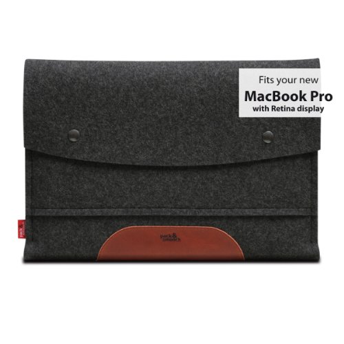 Product DescriptionThis laptop sleeve HAMPSHIRE of the Pack & Smooch collection is made from 100% natural materials. 100% Merino wool (Made in Germany)100% vegetable tanned leather (most of the other leather is chrome-tanned)Our wool felt has a unit mass of 900g/m and with a thickness of 3 mm it provides excellent protection for your laptop. Felt is water repellent, insulating and anti-static. While the material offers aesthetically strength it is also soft to the touch. At the bottom you will find finest leather pads made from 100% vegetable tanned leather which makes it comfortable to carry. The sleeve is designed to have a front pocket to fit some stuff like sheets, CDs, USB-Stick or a pen. This pocket also protects the snaps to be in contact with your laptop.Surrounded just by wool this sleeve will keep your laptop heavenly soft.All sleeves are handmade in our studio in Hamburg.Material100% wool felt and around 1/8" thick100% vegetable tanned leatherSnap & rivet from Prym TM (nickelfree)This sleeve fits:15" MacBook Pro with the RETINA DISPLAY which isHeight: 0.71 inch (1.8 cm)Depth: 9.73 inches (24.71 cm)Width: 14.13 inches (35.89 cm)